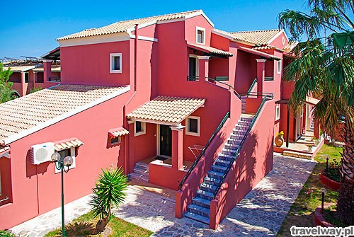 Sidari üdülő település csendesebb részén, nagy területen található a felújított, 80 szobás, főépületből és nyolc kétszintes épülettömbből